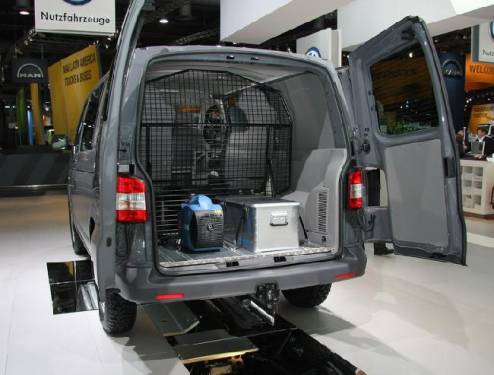 Volkswagen позиционирует новый автомобиль не только для любителей активного отдыха, в том числе выезда на природу, а и как служебную машину для различных ремонтных бригад, в частности электротехнических служб: как раз такая машина и была представлена на недавно прошедшем автосалоне в Ганновере.