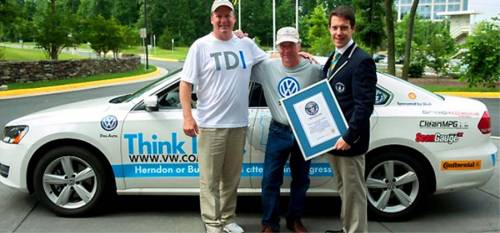 Напомним, похожий рекорд был установлен год назад. Американской семейной паре удалось поставить мировой рекорд по дальности поездки на автомобиле без дозаправки. Джон и Хелен Тейлор сумели проехать 2617 км без дозаправки на новом Volkswagen Passat с 2,0-литровым высокоэкологичным дизельным двигателем и шестиступенчатой механической коробкой передач. Расход топлива составил 2,8 литра на 100 километров. Начав свое путешествие в Хьюстоне, штат Техас, семейная пара проехала через 9 штатов, чтобы на третий день прибыть в Стерлинг, штат Вирджиния.