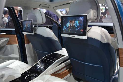 В салоне цифровая приборная панель и дисплей мультимедийной системы объединены в один блок с изогнутым защитным стеклом. Диагональ приборки составляет 12 дюймов, второго экрана – 15 дюймов. Система также поддерживает управление некоторыми функциями при помощи жестов. При этом на руле установлены дополнительные сенсорные клавиши, на спинках передних кресел размещены экраны для задних пассажиров, а на центральной консоли находится электронный селектор коробки передач.