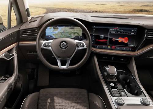 А вот внутри Volkswagen Touareg 2019 еще больше удивляет. Здесь установлен новый «полностью оцифрованный инновационный кокпит» с двумя большими дисплеями — 12-дюймовой приборной панелью и 15-дюймовым экраном мультимедиа, которая поддерживает системы Android Auto и Apple CarPlay и имеет точку доступа WiFi, рассчитанную на 8 устройств.