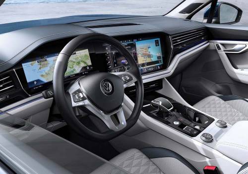 В оснащение Volkswagen Touareg 2019 вошла система подруливания задних колес, предназначенная для улучшения маневренности на низких скоростях и стабильности на высоких, пневматическая подвеска, которая может увеличить высоту хода модели на 70 мм для передвижения по сложному бездорожью, при этом на скоростях свыше 120 км/ч автомобиль, наоборот, приседает на 15-25 мм для улучшения аэродинамики. Наконец, модель может похвастать системой ночного виденья и проекционным экраном.