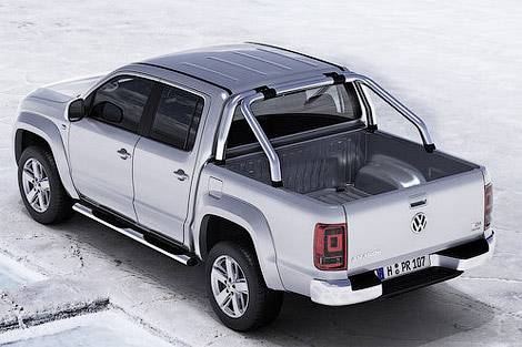 Средний расход топлива самой мощной версии Amarok составит около 7,8 литра на сто километров пробега, а 80-литровый бак обеспечит запас хода более чем в тысячу километров. Отметим, что для пикапа будет доступна полностью отключаемая антиблокировочная система тормозов (для сокращения тормозного пути на бездорожье) и линейка аксессуаров, включающая в себя подножки и несколько видов крышек, закрывающих погрузочную площадку.