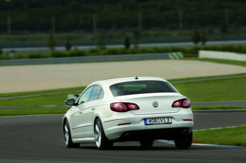 Passat CC R-Line отличают окрашенный в цвет кузова передний спойлер с противотуманками и боковые обвесы, новая окантовка задних фонарей, 17-дюймовые диски. В качестве опции доступны 18-дюймовые колеса.
