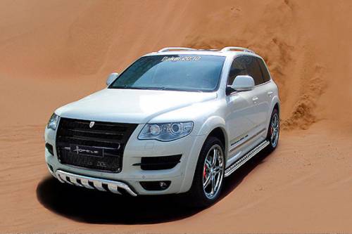 "Спецовка", разработанная тюнинг-ателье из Германии, получила название Touareg Dakar 20.10 Special Edition. От заводской версии автомобиля новинка отличается небольшим боди-китом, стальной защитой днища, порогами и новой черной радиаторной решеткой. Кроме того, тюнеры поставили модель на серебристые 20-дюймовые диски Prado.