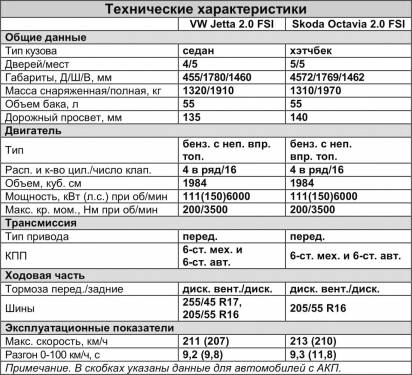 Фольксвагеновский двигатель, созданый по новым стандартам концерна, может порадовать автовладельца своими характеристиками на обеих машинах. Объем 2,0 л FSI и мощность 150 л.с. при 6000 об/мин и максимальном крутящем моменте 200 Нм при 3500 об/мин - это хороший потенциал для каждого водителя. Работа двигателя не ласкает слух искушенного водителя, но и не напрягает монотонным жужжанием. Тем не менее основная задача системы FSI по улучшению моторных характеристик фольксвагеновцам удалась. К другим положительным качествам можно отнести отличную динамику, позволяющую получать стремительное ускорение, и тщательно подобранные передачи шестиступенчатой коробки передач. Однако следует заметить, что производители обоих автомобилей дружно лукавят в отношении расхода топлива: его уходит несколько больше, чем обещано. При динамичном смешанном цикле передвижения (70% пробега за городом) средний расход топлива составил 10,48 литра на 100 км, то есть приблизительно на 2 литра больше, чем заявлено производителем.