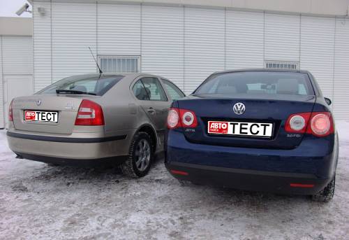 Хотя представленные топовые модели и произведены конкурирующими фирмами, но родиной для них стал все-таки один концерн, поэтому родственные черты проигнорировать никак уж нельзя. Skoda Octavia уже по первоначальному принципу должна быть более дешевым автомобилем, хотя производитель при помощи различных маркетинговых штучек стремится позиционировать модель в более высоком ценовом сегменте. На данный момент модель привлекает, прежде всего, ценой, зато VW Jetta можно смело записывать в «младшие братья» к Passat. С большой долей вероятности можно предположить, что конкуренты не будут отбирать друг у друга потенциальных клиентов. Цены на Skoda Elegance и Jetta Comfortline приближены друг к другу, но после знакомства со списком предлагаемого оснащения посещает крамольная мысль, что каждый из конкурентов хорош по-своему.