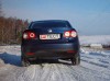 Очень порадовала подвеска: признаться, не ожидаешь от машины вроде бы еще Гольф – класса (хотя какой там гольф, скорее пора уже придумать название новому классу, может быть, даже джетта – класс!), такой цепкости в поворотах и стойкости к нашим ямам и ухабам. Очень неплохо противостоит подвеска и дорожной “мелочи”, не досаждая пассажирам ни продольной, ни поперечной раскачкой. Схема здесь уже установившаяся для многих современных авто: спереди – стойки “Мак Ферсон”, сзади – многорычажка. Разгоны и торможения на “миксте” сопровождаются четкой работой антипробуксовочной системой. И если бы не летние шины, стоявшие на тестовом образце, то мы уверены, машина показала бы все свои лучшие качества. Очень удобно было пользоваться и педалью тормоза, если бы не одно но – уж больно жестко срабатывает АБС, да еще с характерным громким дребезжанием, что наводит на мысли о некоторой экономии в этом смысле производителя, так как и место производства машины – Мексика. Однако абсолютно все, в том числе и собираемые для Европы машины, будут производиться именно там, поэтому каких – либо сомнений в качестве сборки возникать не должно.