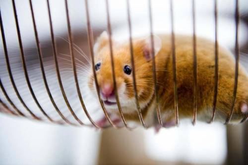 Хомяк Чарли на своем специально сконструированном тренажере.