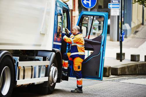 Например, функция опускания входа в кабину активируется, как только включается стояночный тормоз – для удобного и быстрого выхода из кабины. Данную функцию также можно включать и выключать с помощью кнопки на приборной панели. Рядом с сиденьем водителя имеется пневматический шланг для подачи сжатого воздуха, которым можно выдувать пыль и грязь. Кроме этого, за водительским сиденьем доступна установка розетки на 24 вольта, например, для удобного подключения холодильника. Также через специальный адаптер на панели приборов есть возможность установить поворотную камеру или дисплей для взвешивания загружаемого мусора.
