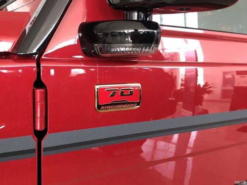 Конечно, кузов окрашен в красный цвет. Бамперы, колесные диски, расширители арок, корпуса наружных зеркал, крыша и спойлер — черные. В дополнение к общему ансамблю — золотистые шильдики и особые бейджи с числом 70. Очень символично, как и количество подготовленных экземпляров — 700 штук.
